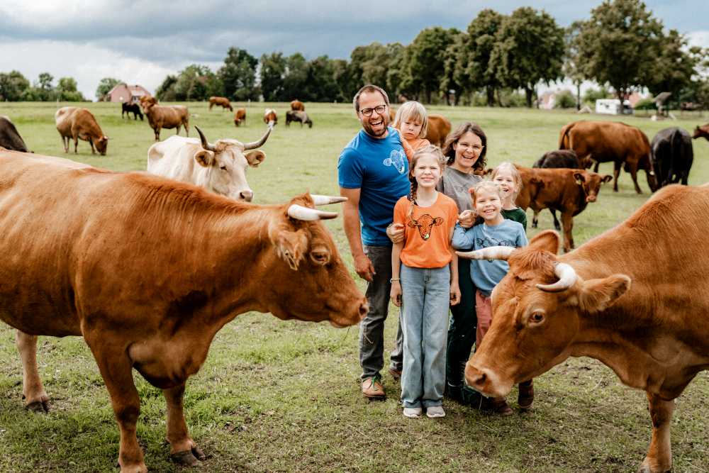 Und wir lieben was wir tun! Mit großer Leidenschaft halten wir Weiderinder und bewirtschaften eine Streuobstwiese mit über 150 alten Sorten. Wir verkaufen unsere Produkte und viele schöne Dinge im Hofladen mit Concept Store Charakter. Der kleine, gemütliche Café Bereich lädt zum Verweilen ein. Wir bringen dir auf dem Lernort und in der Hof-Akademie die Landwirtschaft und die Natur näher. In unserer Solidarischen Landwirtschaft bauen wir für über 100 Familien Gemüse an.