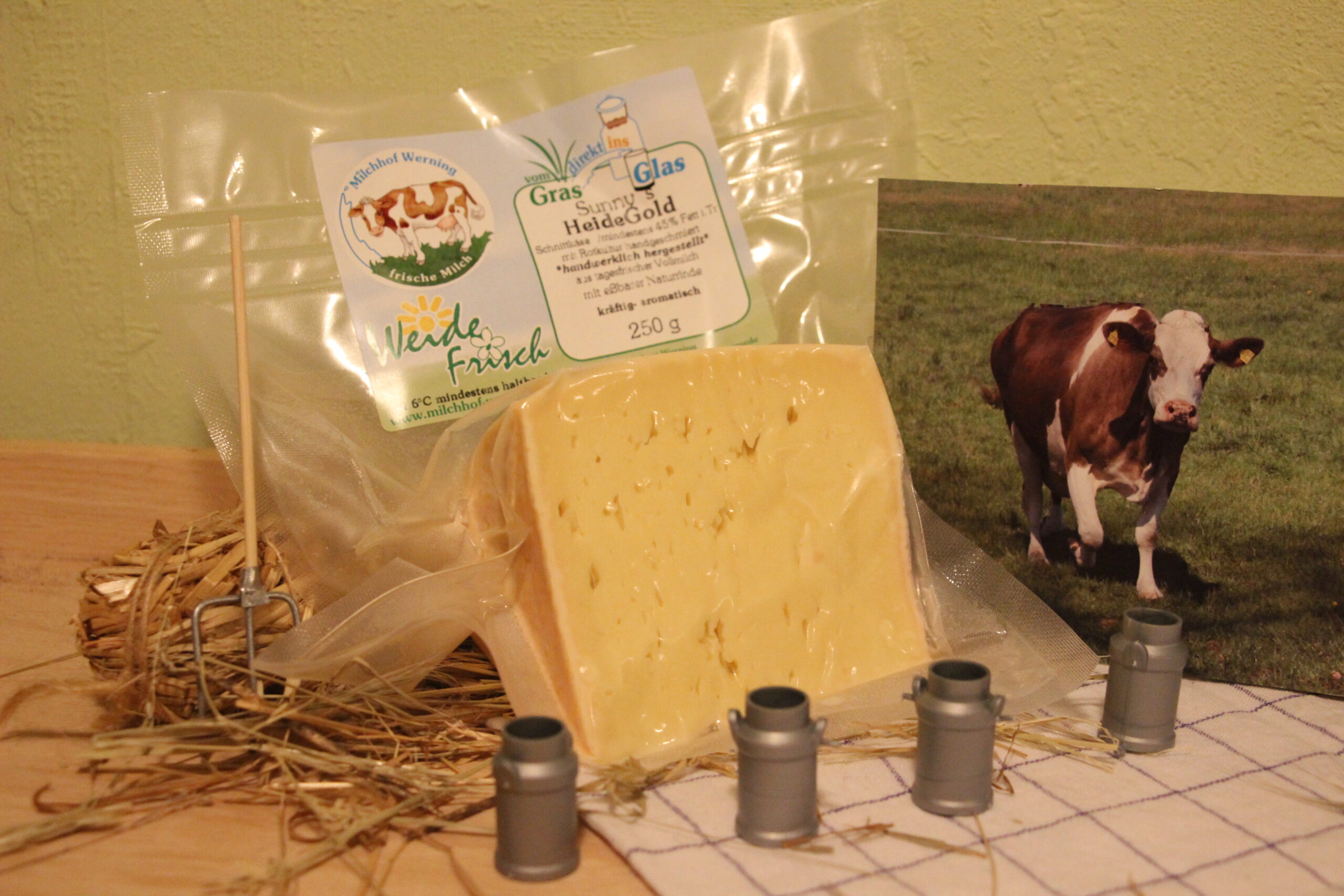 Der „HeideGold“ ist ein Schnittkäse, der 6 Wochen reift, bis er seinen unverwechselbaren kräftig-aromatischen Charakter entwickelt hat. Auch am Geruch ist er deutlich zu erkennen!